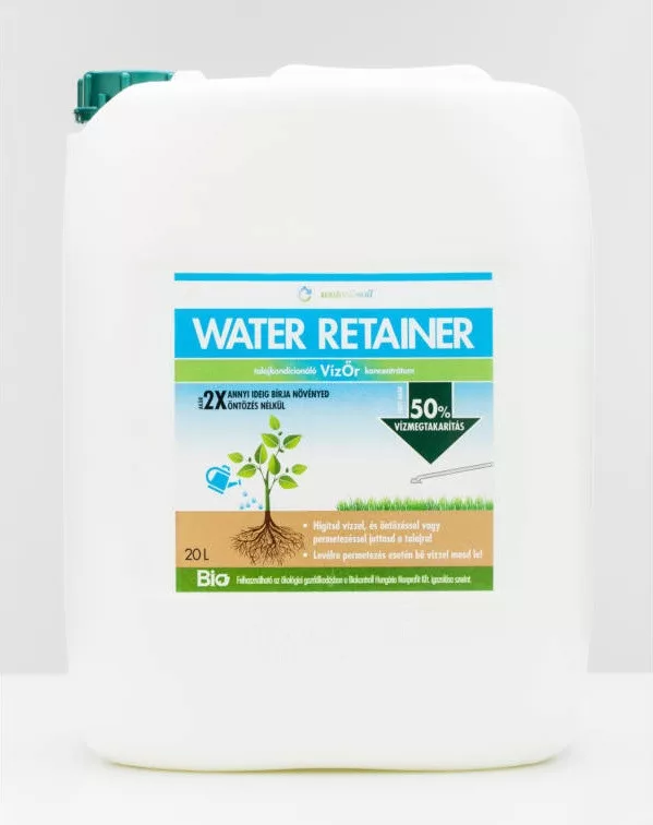 Water Retainer (VízŐr) a levegőből és a talajból felveszi és megköti, a növények gyökérzete számára felvehető állapotúvá alakítja a nedvességet. Hatását a talaj felső rétegében, a növények gyökérzónájában fejti ki.
